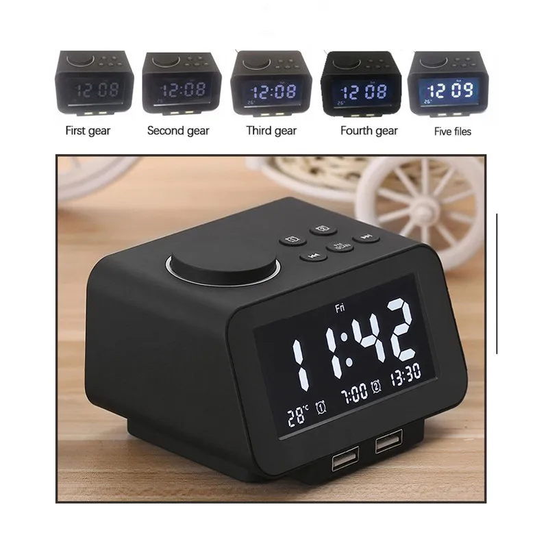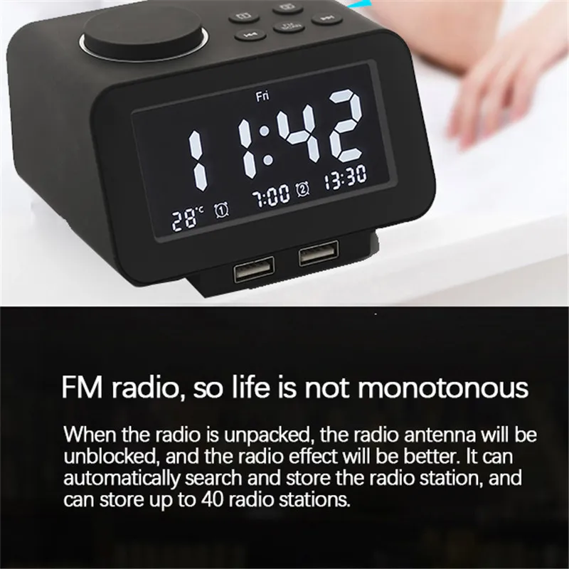 K8 Bluetooth Speaker Alarm Clock Radio Charging Phone Tablet Audio Music Clock Display Gift LED Dis