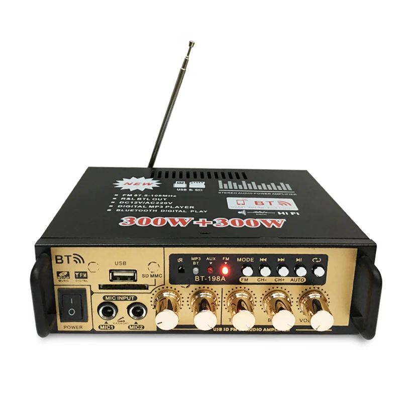 Hot Sale 600W Audio Power Amplifier with EU Plug 12/220V 2CH Mini HIFI Bluetooth Digital Audio Amp for Home