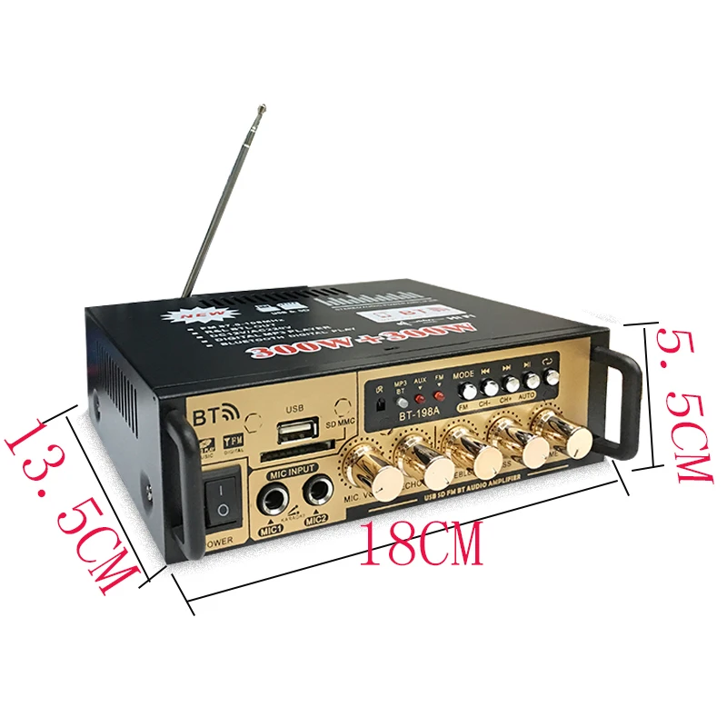ABKT-600W Audio Power Amplifier with EU Plug 12/220V 2CH Mini HIFI Bluetooth Digital Audio Amp for