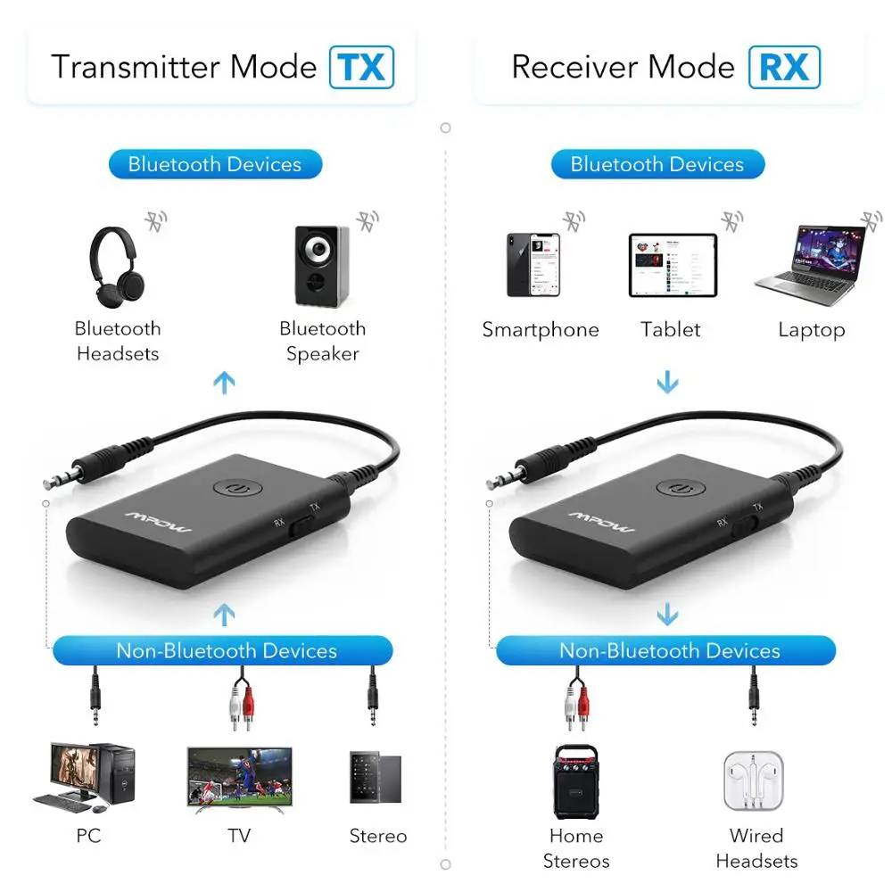 ORIGINAL Mpow BH407 Wireless Adapter Transmitter Receiver 2 in 1 Support APTX With Airplane Adapter 3.5mm to